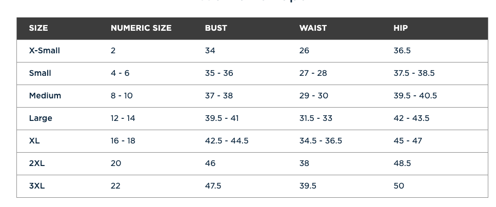 Bust 34 35-36 37-38 39.5-31 42.5-44.5 46 47.5