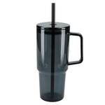 The Lucien Recycled Acrylic Travel Tumbler has a 40 oz capacity for fewer refills and features a slim base that fits into most cup holders, comfortable carry handle, and splash-proof press-on lid with a silicone gasket to secure the straw in place. The translucent, color-matching straw and lid are sure to turn heads wherever you take this tumbler. This eco-friendly straw tumbler is crafted from 100% recycled Acrylic (SAN) with a 100% recycled Acrylic (SAN) lid and 100% recycled polypropylene (rPP) straw. Hand-wash only.Straws are included, but not inserted.